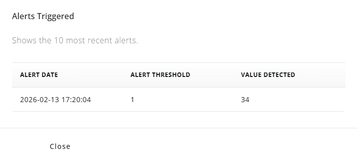 You can also see the last 10 alerts triggered when clicking on the "view alerts" icon: